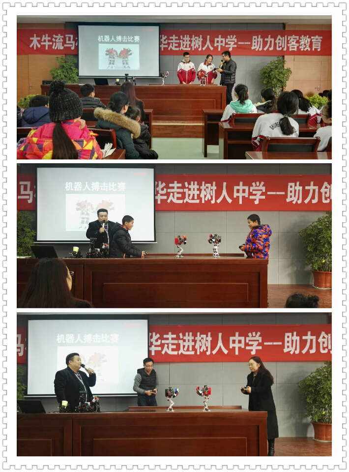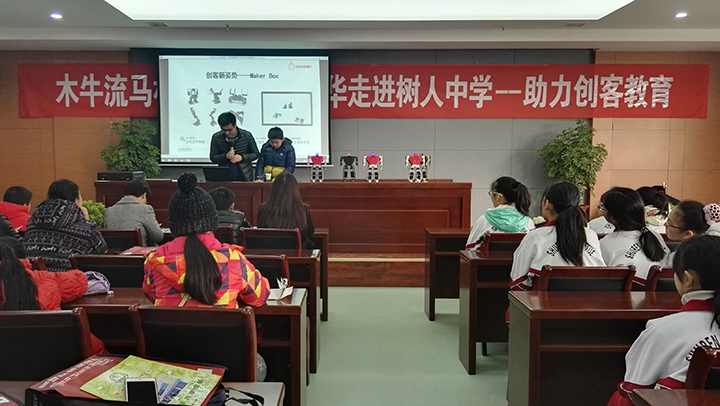木牛流馬機(jī)器人公司再次走進(jìn)徐州樹人中學(xué),與校方一起將創(chuàng)客教育再深入進(jìn)展,讓學(xué)生們更多了解機(jī)器人所包含的科技知識(shí),培養(yǎng)學(xué)生的科技創(chuàng)新能力,提高學(xué)生們的科技素養(yǎng)。此次,木牛流馬機(jī)器人創(chuàng)客教育實(shí)踐基地在樹人中學(xué)正式掛牌成立。